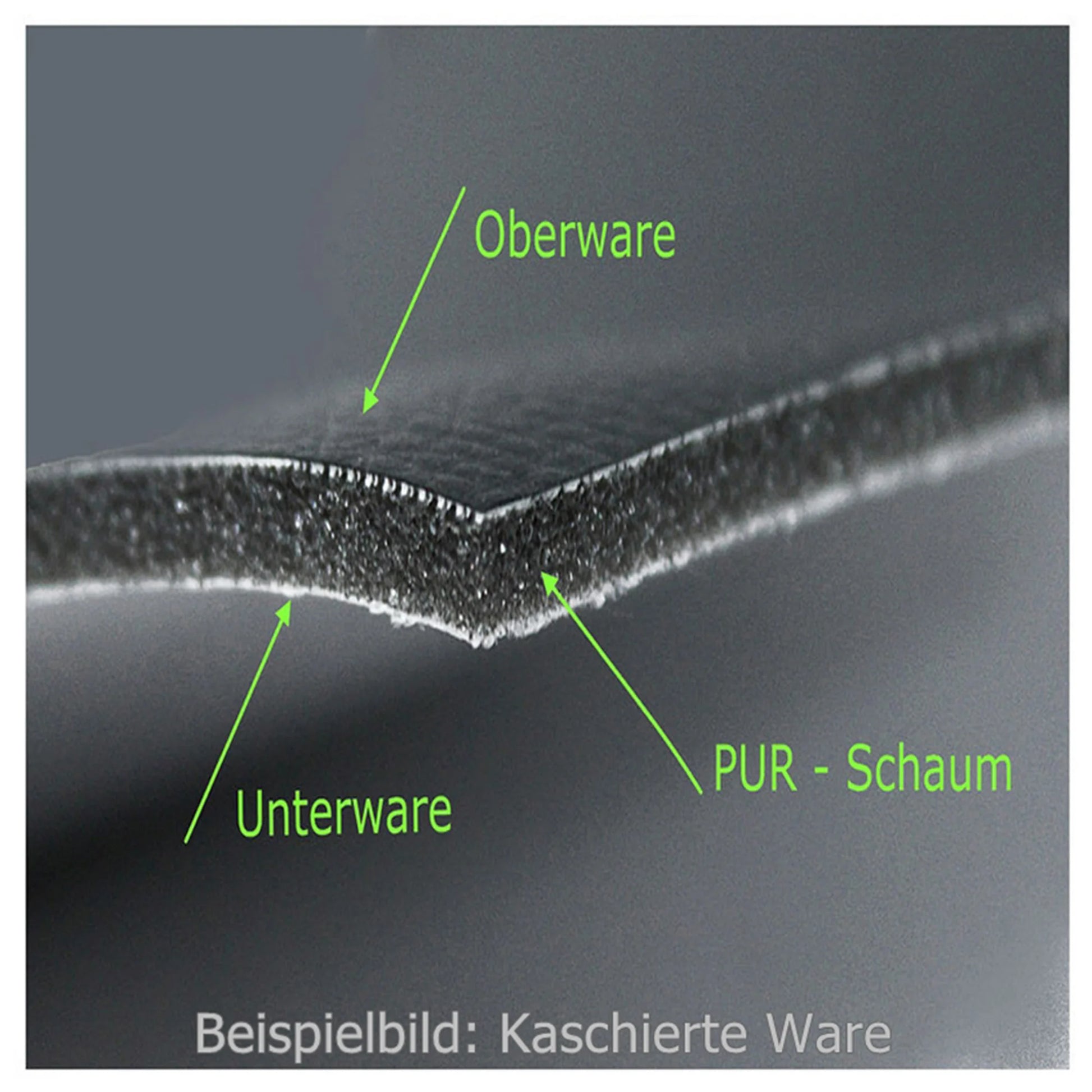 Diese Technologie sorgt für die Haltbarkeit der Kaschierung des Materials und des Schaumstoffs.